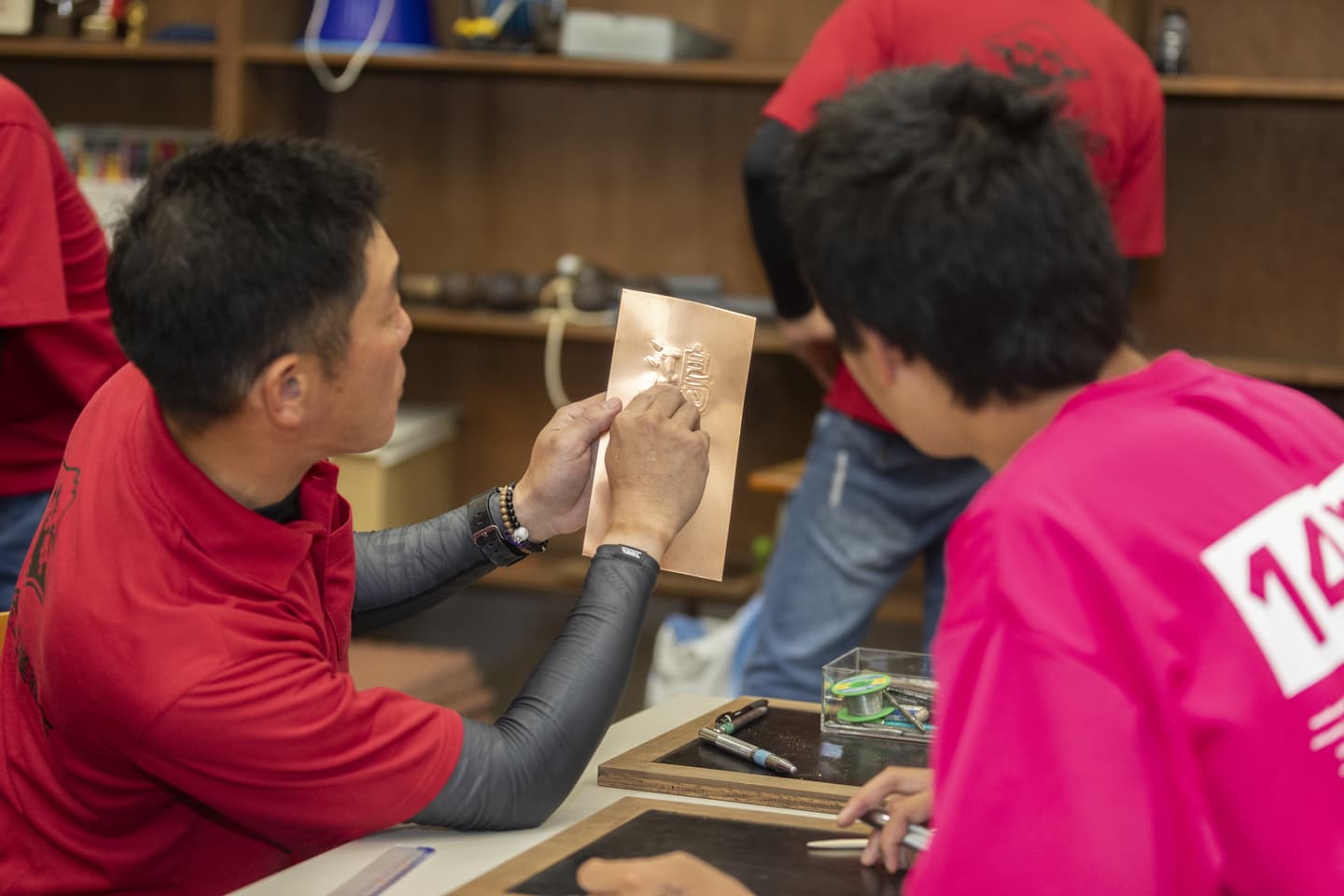 ■地域の活動をしております。地域の学校との繋がりも多く、積極的に子供たちを支援しています。地元の高校生や子供達に板金による伝統の技を教えつつ、板金とは?を広めています。多くのお子様がとても器用に制作し、楽しかったというお言葉をいただいております。